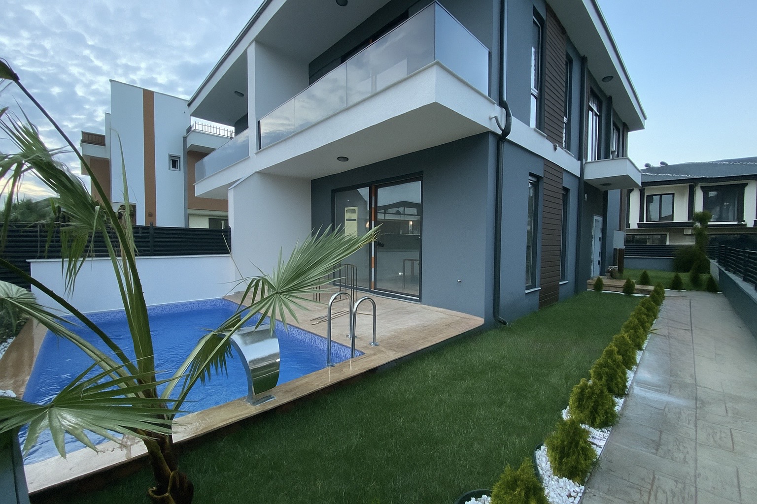 3+1 mutfak ayrı havuzlu ebeveyn banyolu zemin terası 2 tane balkon müstakil giriş müstakil bahçe